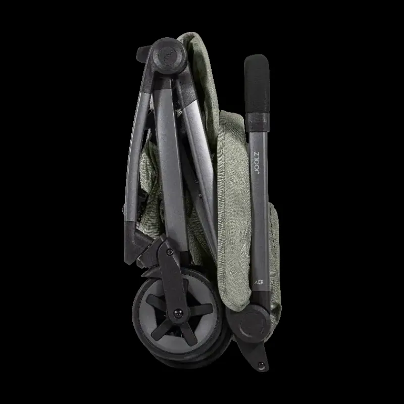 Glem besværet. Med Joolz Aer² folder du nemt vognen sammen med én hånd, og den står selv, når den er foldet. Den automatiske transportlås og den integrerede skulderrem gør den ideel til rejseliv og opbevaring på farten.