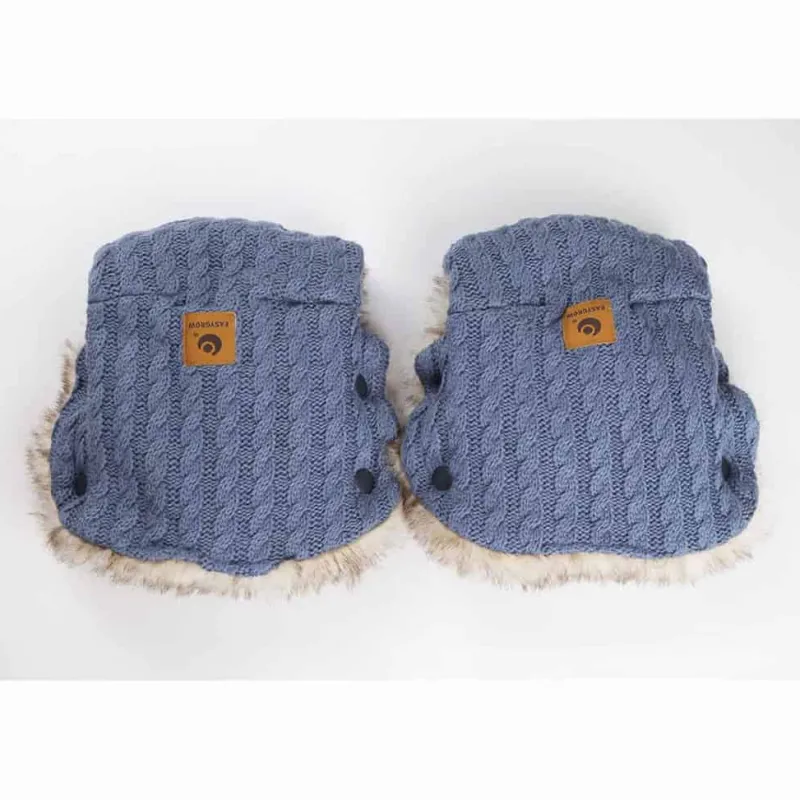 Herlige håndmuffer i samme materiale som vinterposerne, foret med kunstpels. Til kolde dage på trilletur. Mufferne kan kobles sammen, så de kan bruges både enkeltvis eller dobbelt.