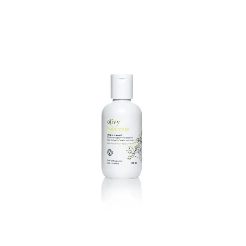 Olívy er et sundt alternativ til vand, sæbe og vådservietter ved bleskift. Det er en 3-i-1-løsning, som renser, plejer og beskytter huden under bleen, og som effektivt forebygger alle former for rødme og hudirritationer. Med sin naturlige blanding af ekstra jomfruolivenolie og den milde kalkløsning, kan du bruge Olívy med god samvittighed – fra barnet er nyfødt. 100 ml anbefales til rejsen. .