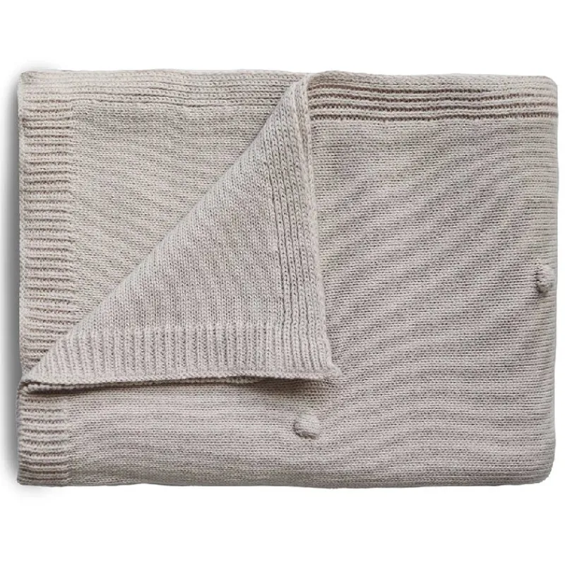 Hold baby varm og tryg med Mushies strikkede tæppe i flotte designs.