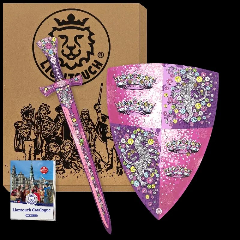 Liontouchs Krystalprinsesse-sæt er den ideelle udrustning for den modige prinsesse, der drømmer om at beskytte sit rige mod onde kræfter. Dette sæt består af et elegant sværd og et smukt skjold, begge prydet med glitrende krystaller og fine detaljer, der virkelig kan sætte gang i fantasien. Med dette sæt i hånden kan din lille prinsesse drage ud i sit kongerige, klar til at opleve magiske og spændende eventyr. Sættet er også perfekt til fantasifulde rollespil og vil være en vidunderlig gave til enhver prinsesse, der elsker magiens verden. Oplev hele Crystal Princess-kollektionen og giv din prinsesse alt, hvad hun behøver for at skabe uforglemmelige eventyr i sit eventyrrige.