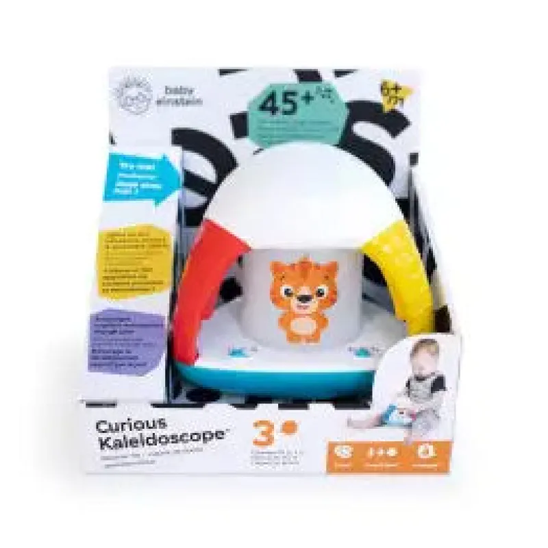 Opdagelser er spændende med Baby Einsteins elektroniske kalejdoskop-legetøj. Tryk på det farvede håndtag for at se den tilsvarende nuance lyse op i kalejdoskopets kuppel. Baby vil høre navnet på farven, mens baby ser legetøjet lyse! Eksperimentér med farveblanding ved at tage fat i to håndtag på én gang. Et musikalsk soundtrack vil holde babys opmærksomhed, mens baby opdager primære og sekundære farver gennem læring af årsag og virkning. Kaleidoskopet fremmer den kognitive udvikling gennem leg!