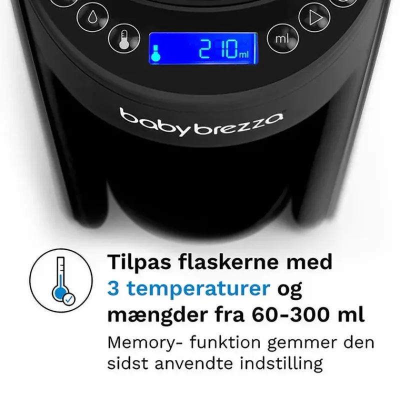 Baby Brezza Formula Pro Advanced BLACK er den mest avancerede måde at lave en varm flaske automatisk på et øjeblik. Formula Pro Advanced blander pulver og vand til den perfekte konsistens hver gang. Nu er det slut med bøvl og ventetid! Du kan tilpasse dit barns flaske med 3 forskellige temperaturer og dosere færdigblandet eller blot tempereret vand fra 60-300 ml og nemt justere mængden i trin af 30 ml. Fungerer med stort set alle pulvermærker og flasketyper på markedet. BPA-fri. 2 års garanti.