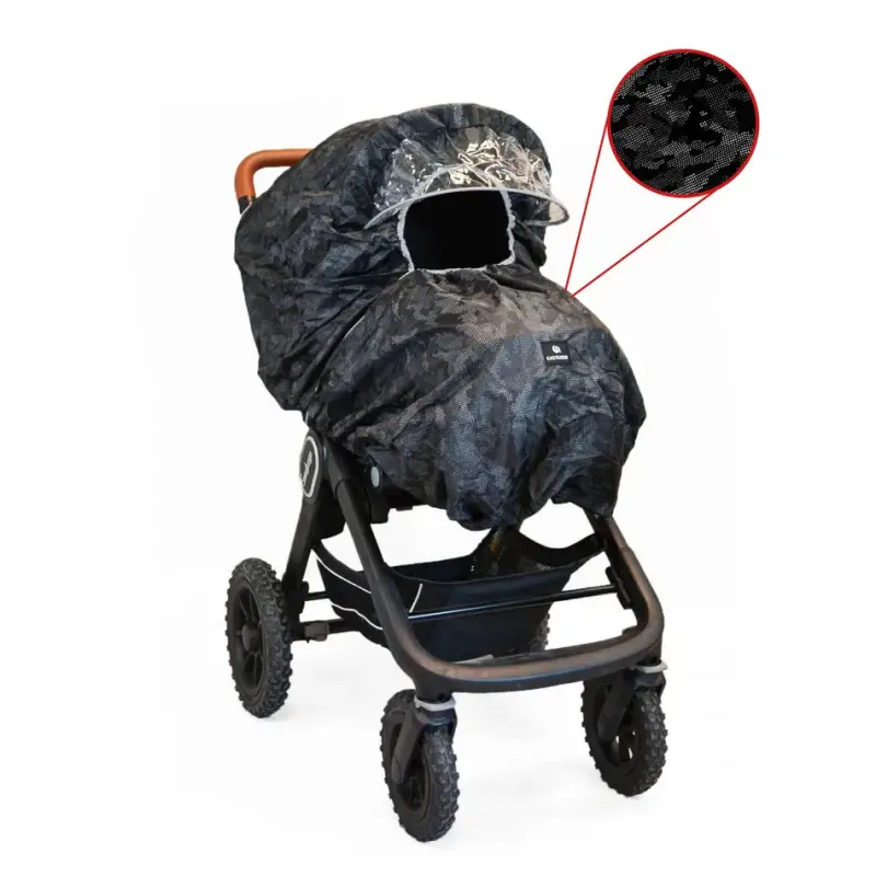 Unvisersalt regnslag, der passer på de fleste vogne med refleksmønster og gennemsigtig skærm.