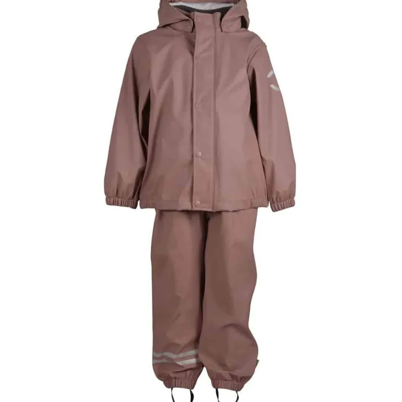 Regnsættet fra Mikk-Line er vind- og vandtæt med et vandsøjletryk på 8000 mm. Bukserne har stropper ved fødderne der er med til at forhindre at buksebenet kravler op under leg.