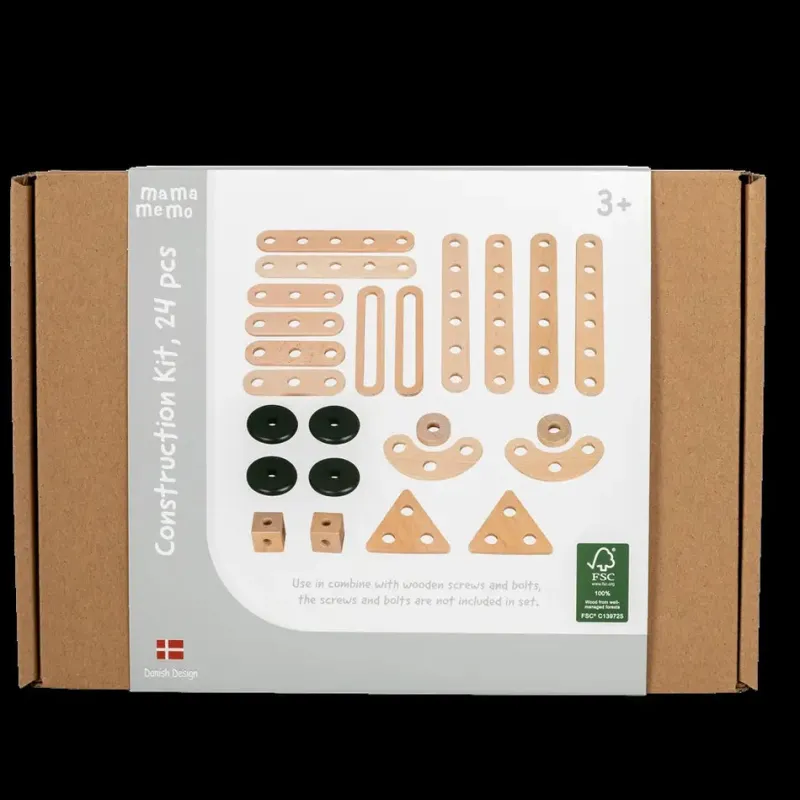 Sættet indeholder 24 dele og passer perfekt med alt MAMAMEMO®s værktøjsserie. Suppler delene med sættet med søm, skruer og møtrikker og I kan sammen få timer til at gå med at skrue og samle.