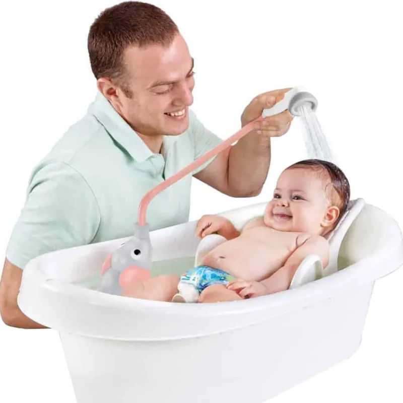 Sjov og lærerig legetøj for barnet og en effektiv lille bruser som forældrene kan bruge til at vaske barnet med.