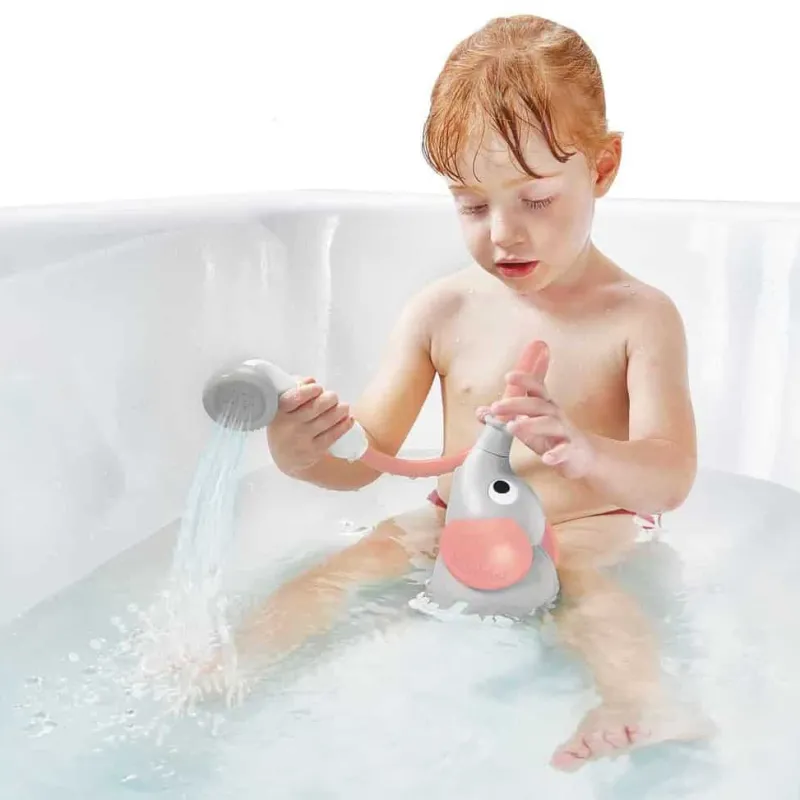 Yookidoo Elefant Bruser – Rosa, dit barns egen batteri-drevet bruser. Den er super sød og sjov, bruseren trækker vand fra badekaret og skaber en endeløs strøm af vand. Bruseren er en charmerende elefant med en lang snabel. Tryk på den lille knap og elefanten begynder at trække vand fra badekaret. Elefant brugeren er en god størrelse så barnet også selv kan lege med den.