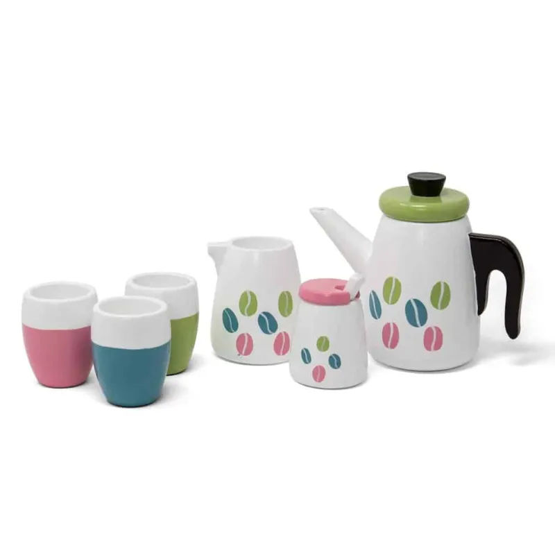 Kaffekande med låg. Sukkerskål med låg og teske. Mælkekande samt 3 krus. I alt 9 dele Str. Kande: H: 12 cm
