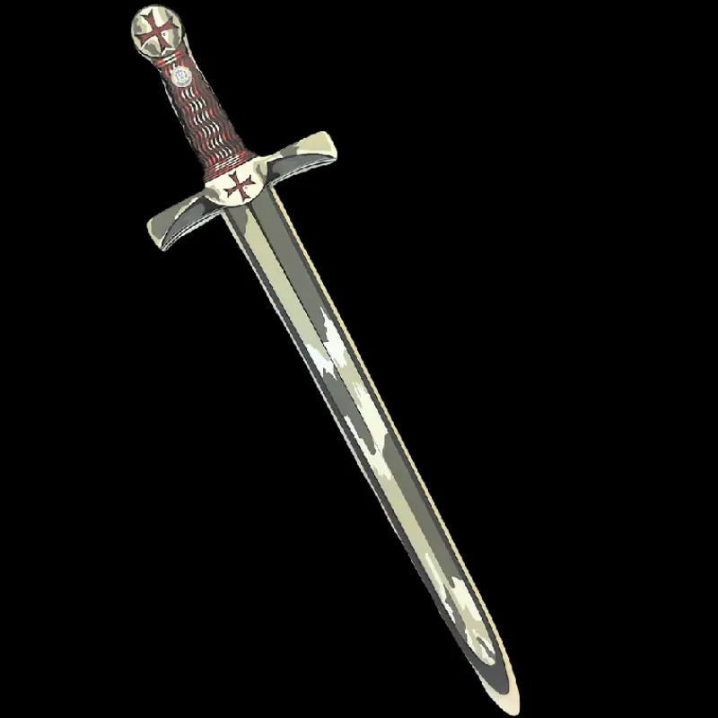 Sværdet er fremstillet i skum med flotte detaljer, der giver et klassisk og autentisk udtryk, samtidig med at det er sikkert at lege med. Det er designet med fokus på det essentielle: en stærk, lige klinge, en solid parerbøjle og en god vægtfordeling, som gør det nemt at manøvrere i kamp.