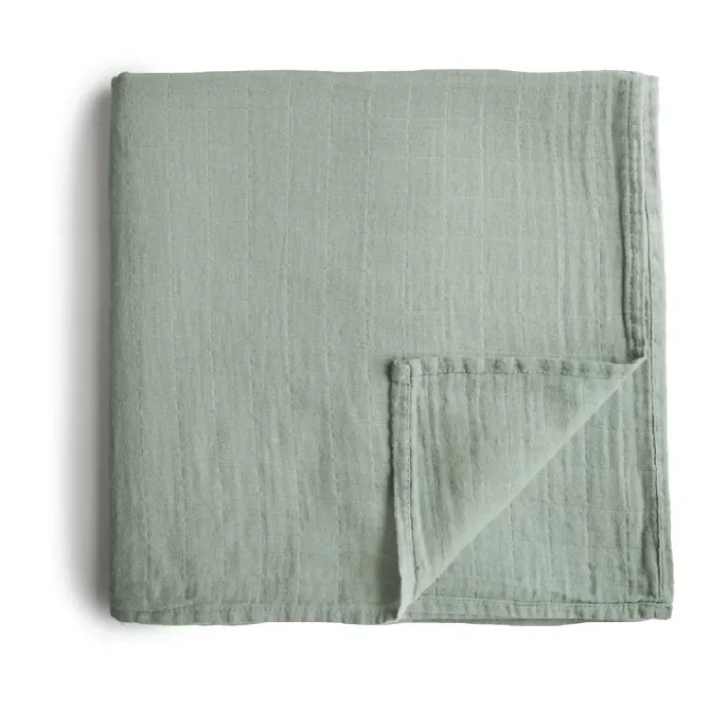 Med Mushies ekstra bløde muslin-svøb kan du sørge for, at babyen forbliver varm og dejlig, mens den sover. Den åndbare svøb er perfekt til at svøbe, amme og kramme babyen.