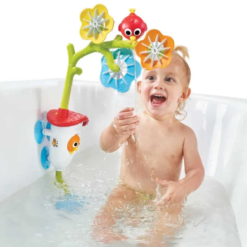 Yookido Bad Mobile, er et batteri-drevet blomster-vandfald. Den trækker vand fra badekaret og skaber en endeløs strøm af vand. Vandet risler stille og roligt ud fra de 3 blomster og fuglens næb. Barnet vil elske at sidde og prøve at fange vandet, som stille risler ned i badekaret.