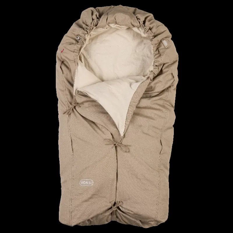 Voksi® Classic+ Dark Sand. Kørepose med en unik dyne som er fremstillet i den fineste uld, og i sunde materialer, der alle er Oeko-Tex® STANDARD 100, Klasse 1 godkendte. Uldens naturlige egenskaber holder dit barn dejlig varmt og tørt samt føles super blød at ligge i. Voksis smarte foldesystem gør, at det er nemt at tage dit barn ind og ud af posen. Når soveposen foldes helt ud, kan du med glæde bruge den som et legetæppe eller madras i tremmesengen. På den måde bliver Voksi® Classic+ et genkendeligt og trygt sovested både i børneværelset og i vognen. Du kan supplere Voksi® Classic+ med et tilkøb af Voksis bæreplade, således at soveposen kan bruges som lift, i stedet for den traditionelle lift. Voksi Classic+ er det helt rigtige valg og giver dit barn en rolig og behagelig søvn.