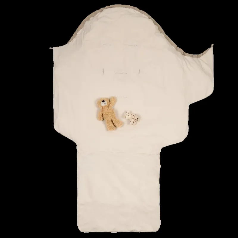 Kan åbnes helt op og bruges som legetæppe eller dyne.
