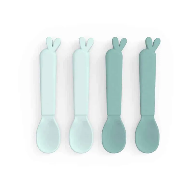 Når det er tid til opstart af skemad, er det med at have rene skeer nok! Med dette sæt af fire sjove Kiddish skeer med Lalee’s ører har vi din ryg. Holdbare skeer, designet til hyggelige spisestunder, der selvfølgelig kan klare opvaskemaskinen. Kiddish børneskeerne er bæredygtige og produceret i Danmark. Efter et langt liv med mos og grød kan skeerne sorteres som hård plast og genanvendes til at skabe nye produkter til hverdagen. En praktisk pakke med fire Kiddish skeer i to nuancer af blå. Skeerne har en mat, silkeblød overflade, der føles rart for barnet.