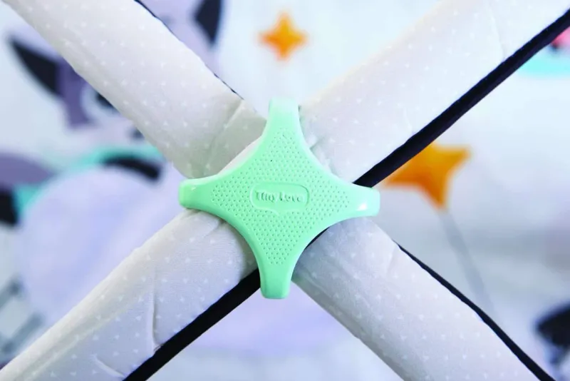 Lækkert aktivitetestæppe med 18 funktioner. De justerbare archers gør dette tæppe kan justeres efter alder på barnet. Flotte farver og tåler maskinevask.