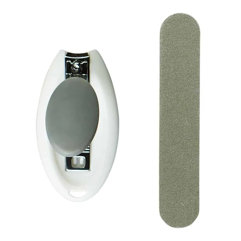Negleklipperen har et blødt håndtag, og derved et godt greb. Filen anvendes ved skarpe kanter på barnets negle, for at undgå negle der river barnets hud.