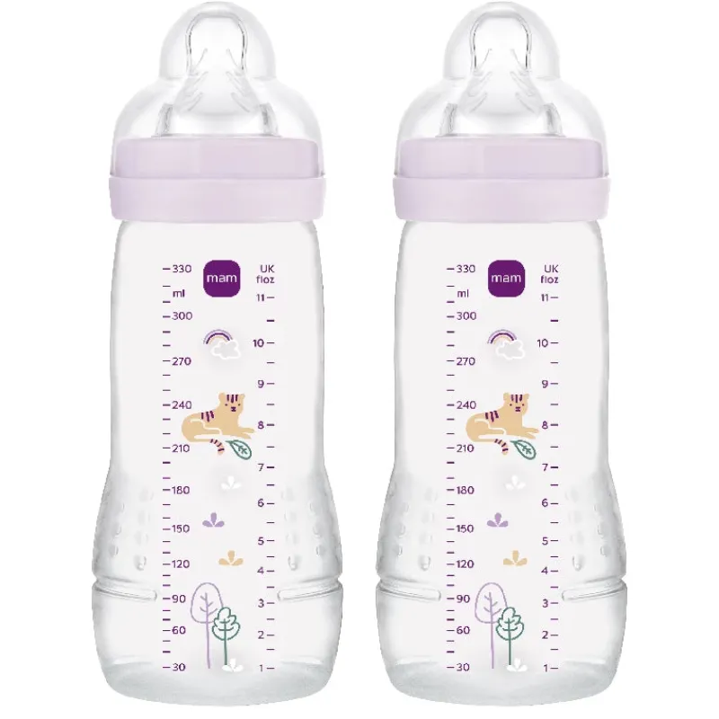 Gribevenlig og ergonomisk sutteflaske, der er perfekt til modermælkserstatning. MAM Easy Active har en bred hals, som gør flaskerne nemme at fylde og rengøre. Det lækagesikre låg kan også bruges som målestok. MAM Sut 3 med silkeblød silikone, MAM SkinSoft medfølger.