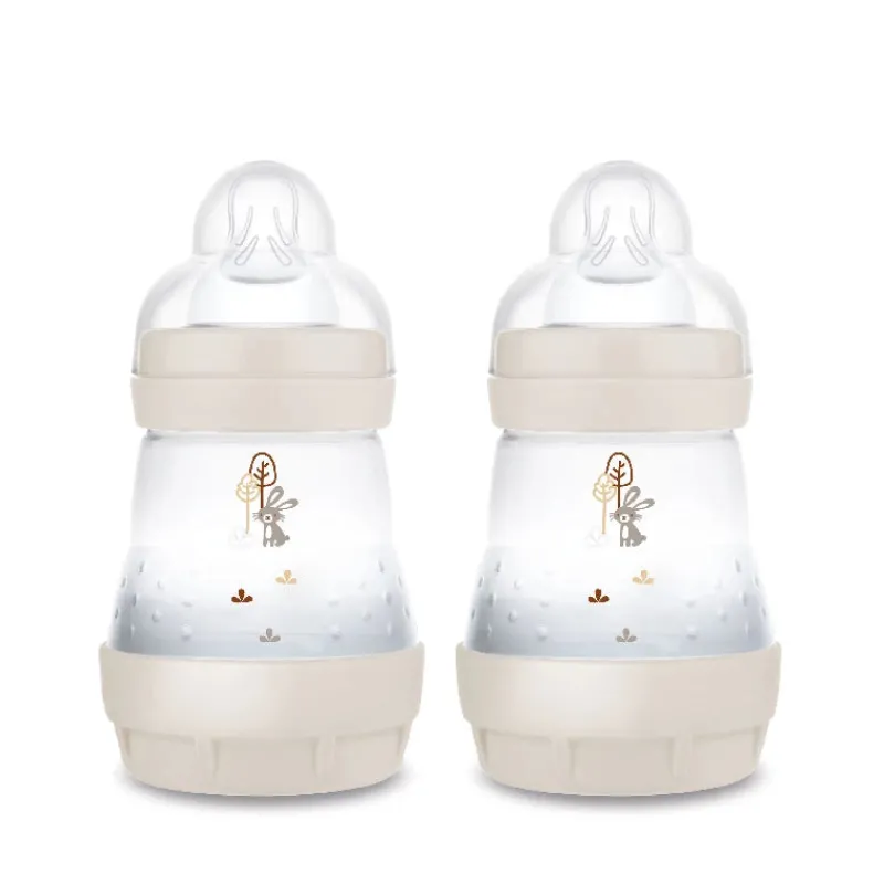 MAM Easy Start Anti-Colic Bottle er designet til at forebygge kolik og andre almindelige problemer som kan opstå ved madning. Det innovative antikoliksystem med en ventil i bunden forhindrer, at der dannes luftbobler i væsken, og hjælper dit barn med at drikke mere afslappet. Den unikke flade form på sutten efterligner moderens brystvorte under amning og giver barnet en velkendt fornemmelse. Det gør det lettere at skifte mellem amning og flaskemadning. Sutten passer til alle MAM-flasker og Trainer. Lækagesikkert låg, der også kan bruges som mål. Flasken kan nemt steriliseres i mikrobølgeovnen på 3 minutter – det sparer tid og op til 85 % energi og CO2*.