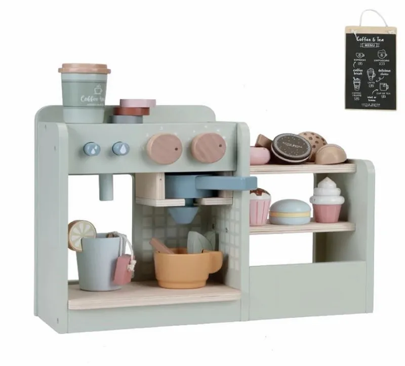 Læn dig tilbage, slap af og nyd en lækker espresso lavet af din lille Barista med den vidunderlige espressomaskine lavet af højkvalitets -certificeret træ i farverne og designet fra Little Dutch.