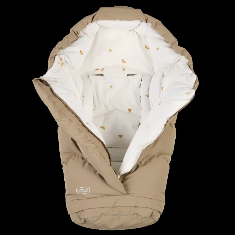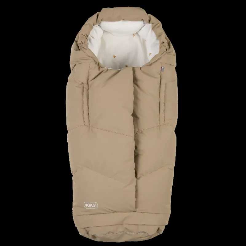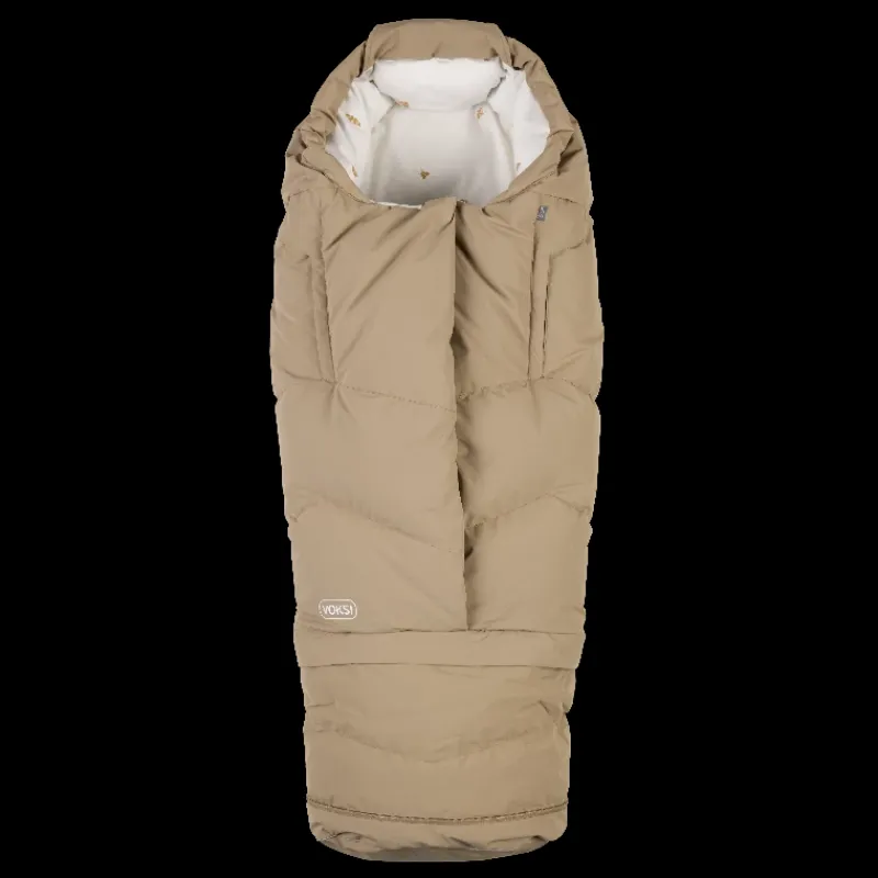 Køreposen består af naturlige og kvalitetssikre materialer som uld og dun. Voksi City North har uld i ryggen, som temperaturregulerer og sørger for at barnet holdes tørt. Fyldet er af højkvalitetsdun og posen er syet med en unik bokskonstruktion, der forhindrer kulde i at slippe ind. Det er luften mellem dunfibrene som giver maksimal isolering og holder barnet varmt i det kolde vejr.