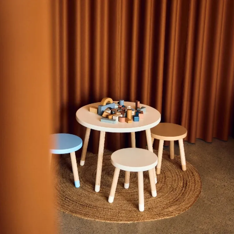 Stolen har malede fødder og fås i flere farver. Brug stolen sammen med slagbænken og det firkantede bord.