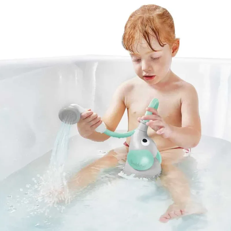 Yookidoo Elefant Bruser – Turkis, dit barns egen batteri-drevet bruser. Den er super sød og sjov, bruseren trækker vand fra badekaret og skaber en endeløs strøm af vand. Bruseren er en charmerende elefant med en lang snabel. Tryk på den lille knap og elefanten begynder at trække vand fra badekaret. Elefant brugeren er en god størrelse så barnet også selv kan lege med den.