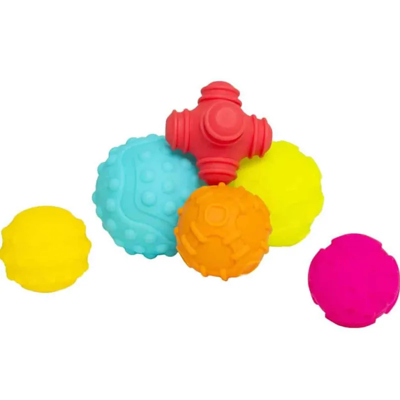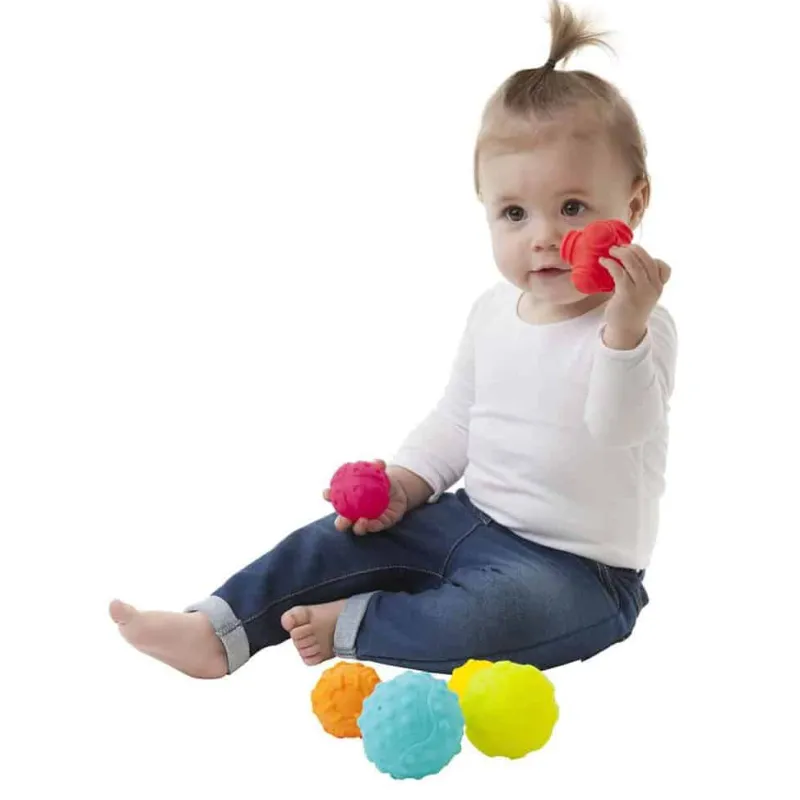 Bløde sansebolde. Bløde sansebolde i meget flotte farver med forskellige strukturer. Babyen kan sikkert udforske boldene med hænder og munden, som opfordre babyen til at udvikling af sanserne.