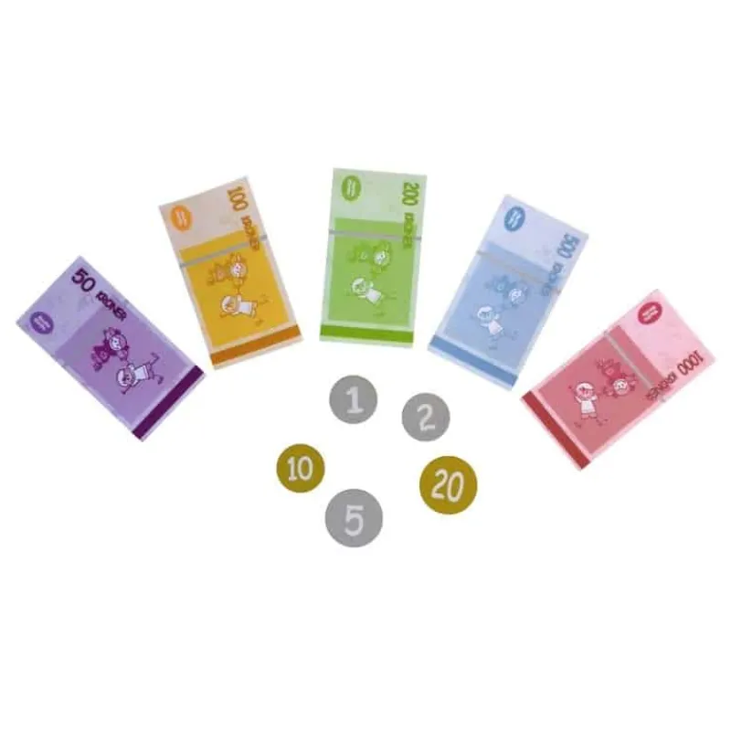 - 5 mønter (1 af hver)