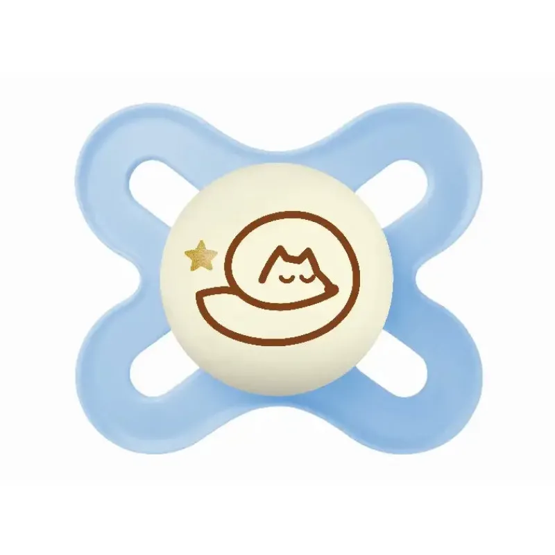 MAM Original Start Night er en ekstra lille og let sut, der passer til de mindste babyer. Sutten er hudvenlig takket være store lufthuller og MAM’s unikke knoppede inderside. Sutten er lavet af silkeblød silikone, MAM Skin SoftTM, som føles blød og velkendt ligesom mors hud og accepteres af 94 % af babyerne*. MAM Start Night leveres i en praktisk opbevarings- og steriliseringsboks, som gør det nemt at sterilisere sutten i mikrobølgeovnen. Med sin selvlysende knop er MAM Original Start Night nem at finde i mørket – for nemmere nætter.