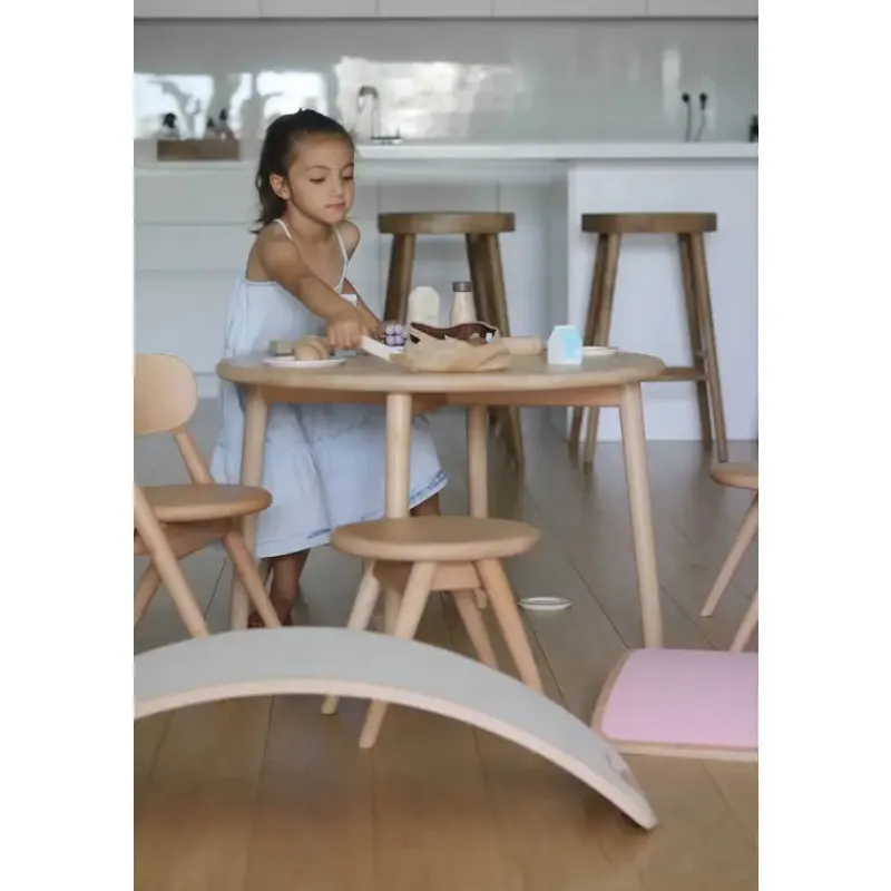 Rundt bord. Curve Lab. Designer Mikiya Kobayashi har designet et unikt rundt bord ved dets flotte træhåndværk og enkelhed. Bordet er ideelt til enhver aktivitet, fra leg til tegning og ethvert kreativt projekt for børn. Det stabile bord er lavet af massivt bøgetræ og har en mat finish. Det er perfekt til jeres børn i alderen 2- 5 år. Det minimalistiske design og den organiske form passer perfekt til enhver indretnings stil og flere generationer kan få glæde af bordet.