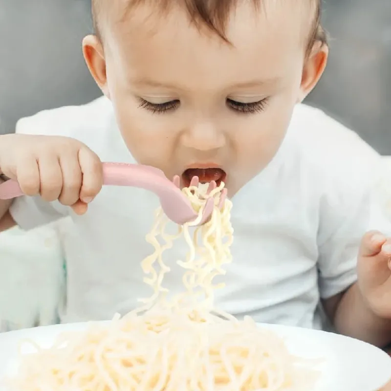 Ergonomisk designet til at hjælpe dit barn med at spise selv.