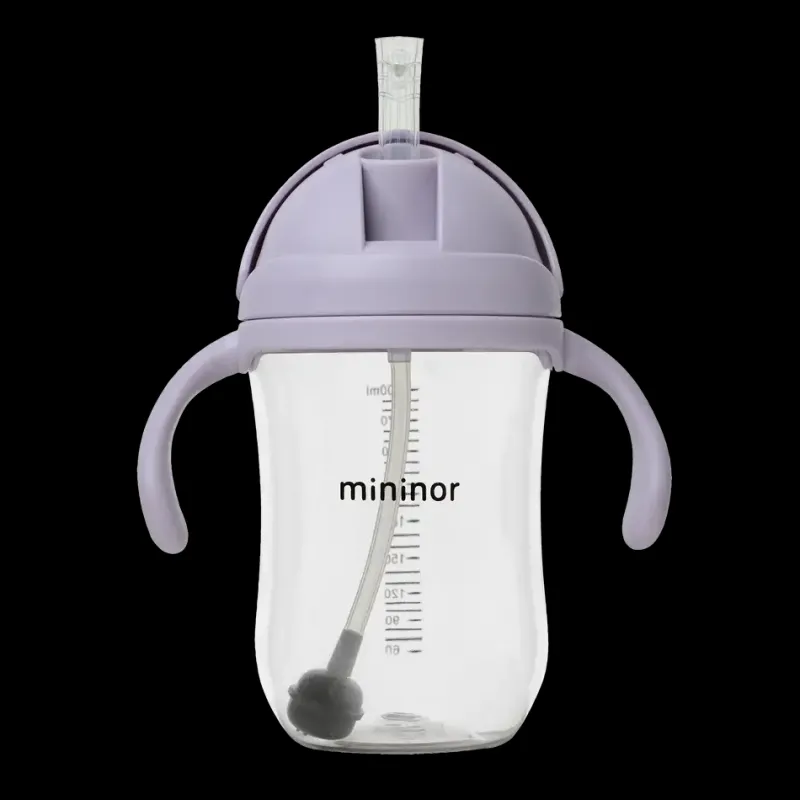 Mininor koppen har et smart låg, som kan skubbes frem og tilbage. Sugerøret er fleksibelt, og foldes sammen, når låget skubber over den. I låget er der også et lille lufthul, som sikrer, at der ikke skabes undertryk.