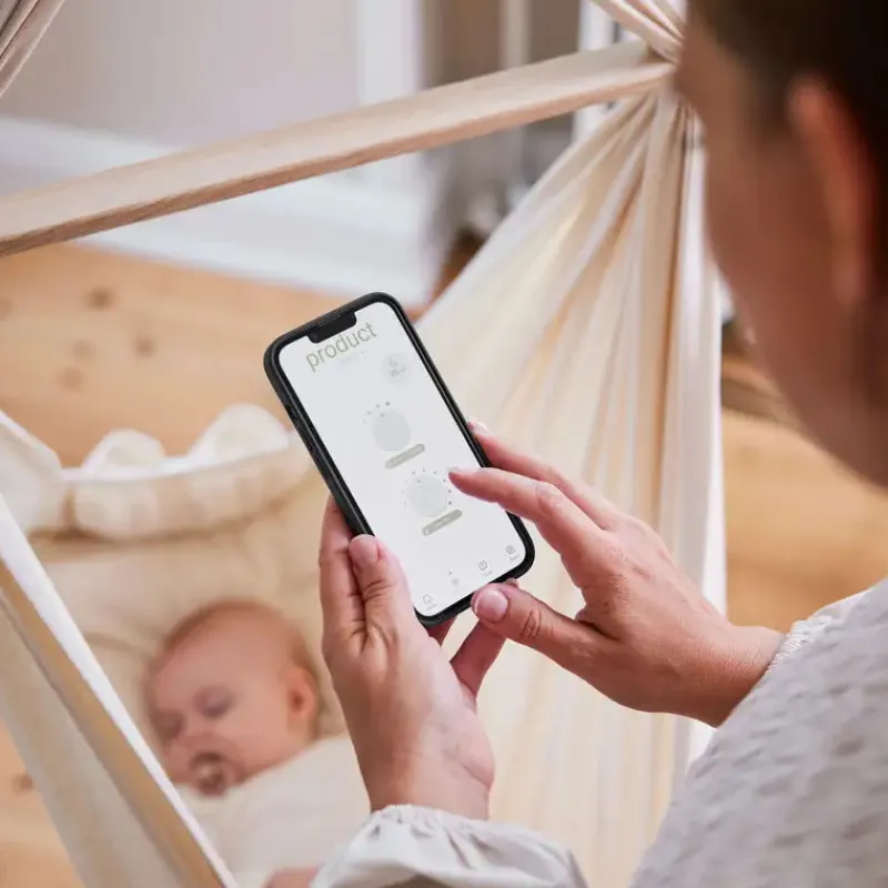 Dansk Design med Secure Rope Suspension: Vuggemotoren udstråler dansk æstetik og sikkerhed med sin pålidelige rebophæng, der sikrer både stabilitet og et elegant design. Udviklet i samarbejde med førende søvneksperter.