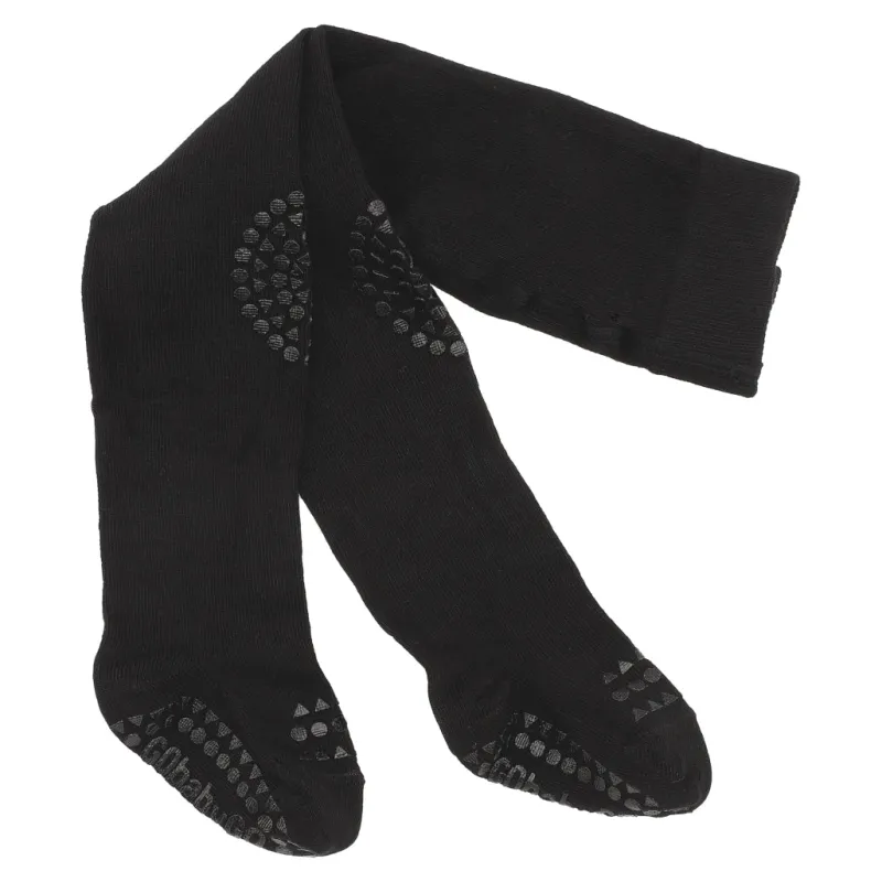 GoBabyGo kravle strømpebukser har special designede gummi dutter på knæene, under fødderne og ovenpå tæerne, så barnet ikke glider når det skal i gang med at kravle og gå.