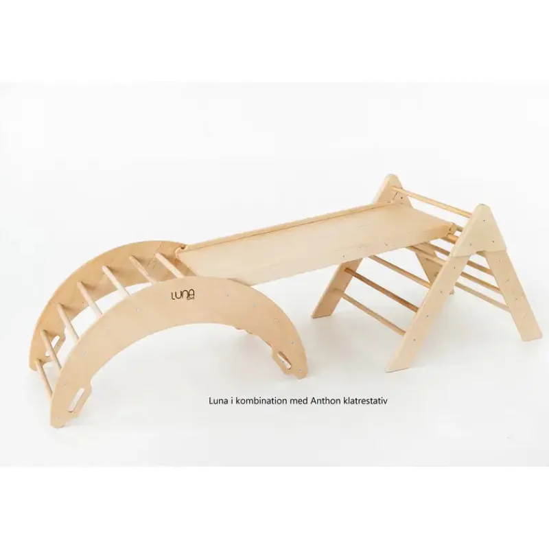 Hemmingsen Kids Luna Klatrebue er en eksklusiv trælegesag, skabt med miljøvenlige materialer og malet med naturlig, ugiftig maling og lak. Din lille vil opleve masser af sjov med klatrebuen, samtidig med at fantasien, balancen, finmotorikken og musklerne udvikles, og koordinationen forbedres.