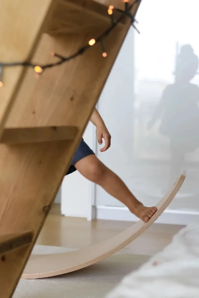 Major Arc – Balancebræt med filtstof. CURVE LAB. Major Arc balancebræt er i en lidt mindre udgave end Perfect Arc, hvor det lille barn hurtigere kan gøre brug af balancebræt, grundet vægt og størrelse. Designet til at fremme leg, fantasi, udvikling og samtidig styrkelse af motorikken. Med et fokus på både design og funktionalitet er balancebrættet en uundværlig tilføjelse til ethvert hjem eller læringsmiljø. Oplev et håndværk, der ikke kun indbyder til sjov, men også til social læring i alle aktiviteter! Når dit barn balancerer, klatre, hopper eller bærer brættet under deres leg.På undersiden af dette balancebræt, er der et filtstof, der er med til at beskytte gulvet. Tag en velfortjent pause på puden, der kan tilkøbes.
