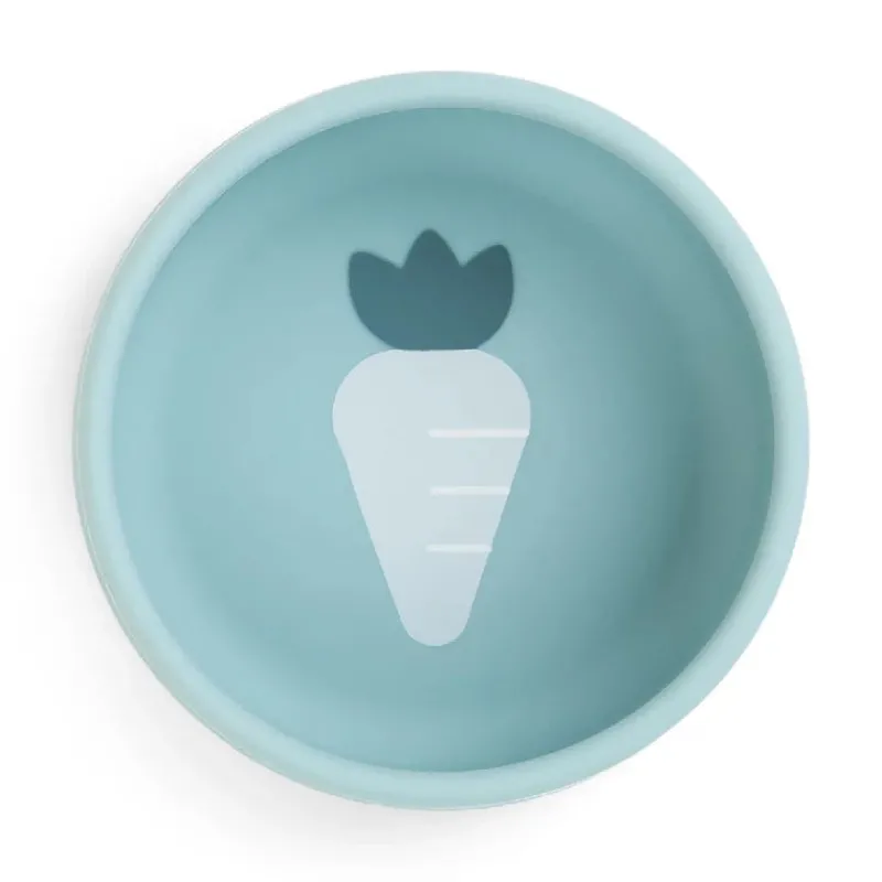 Silikone “første måltid”-sættet gør spisetid sjov og nem. Det praktiske startsæt i skridsikker silikone med godt greb indeholder en børneskål, en ske og et minimag. Perfekt som det første spisestel til babyer.
