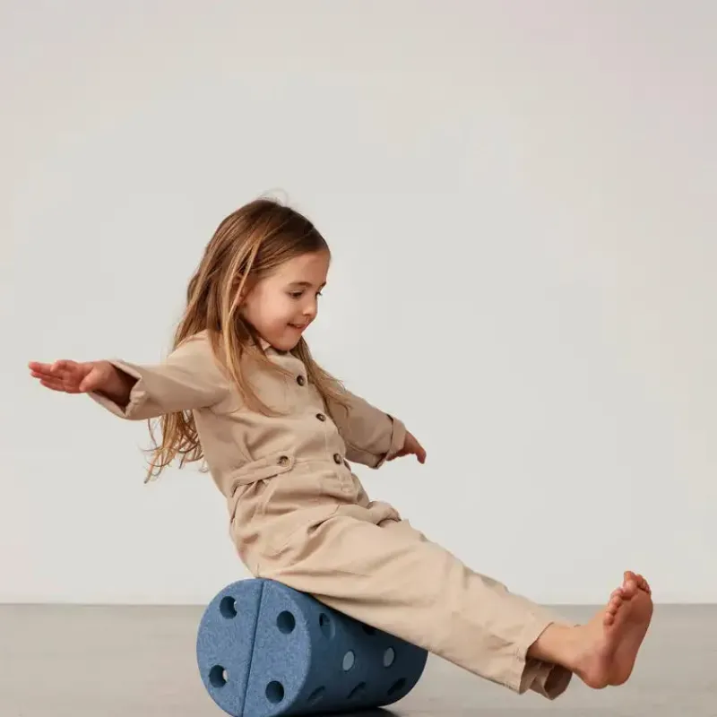 Lav øvelser til mavetid, styrk ryg og nakke ved at rulle frem og tilbage, eller lad de store vippe og øve sig i at holde balancen, mens de sidder op. Du kan endda skille klodserne ad og gå på line eller bygge en forhindringsbane. Når legen er slut, fungerer Balancerullen perfekt som en lille taburet, der er let for børn at tage med sig rundt og bruge efter behov.