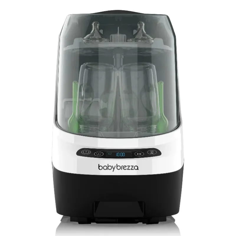 Sig farvel til din flaskebørste, og sig hej til den første maskine som automatisk vasker, steriliserer og tørrer alle flasker, suttekopper, brystpumpedele og tilbehør med et enkelt tryk på en knap! Baby Brezza Bottle Washer Pro® fjerner effektivt mælkerester med 20 højtryksstråler, der rengør alle flader indvendigt og udvendigt. Den bruger også naturlig damp til at dræbe 99,9 % af bakterierne og tørrer derefter alle dele helt med bakteriefri HEPA-filtreret varmluft. Bottle Washer Pro® er nem at bruge, har plads til 4 flasker, brystpumpedele, suttekopper og tilbehør fra de fleste mærker og kræver ingen rørføring. BPA-fri. 2 års garanti