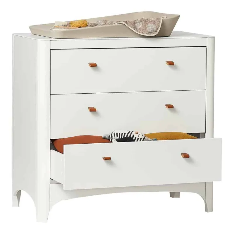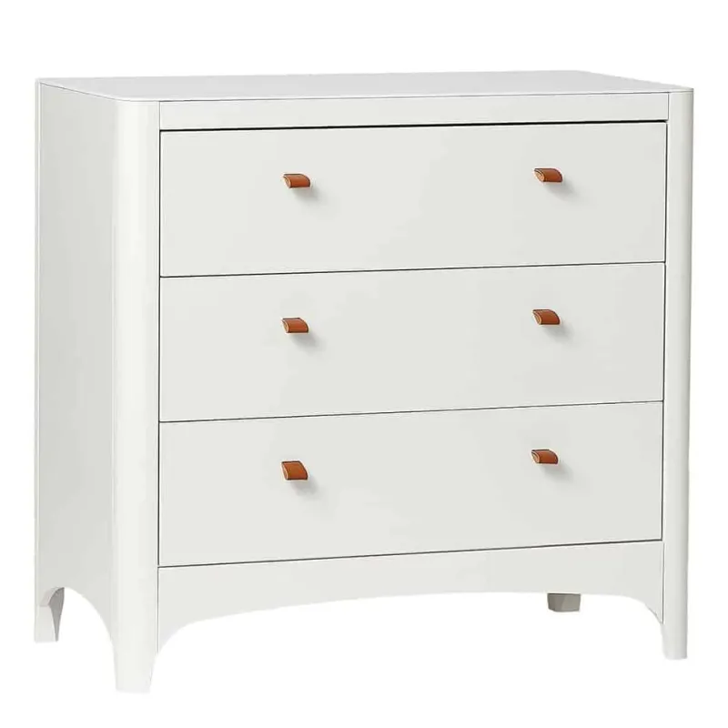 Leander Classic™ kommoden giver dig gennemtænkt design til børneværelset. Med tre rummelige skuffer er kommoden perfekt til opbevaring af alt fra bluser og bukser til legetøj og bøger. Kommoden er designet uden skarpe kanter men med bløde, runde former, der passer godt til barnets legende univers. De 3 rummelige skuffer lukker stille og roligt i med soft-luk og passer dermed på små nysgerrige fingre.