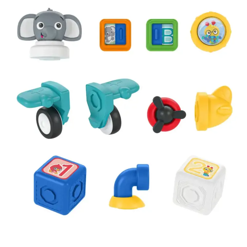 Inspirér dit barns indre ingeniør med Baby Einstein Connectables magnetiske aktivitetsblokke “Dive & Soar”, et land- og havbyggesæt af elleve STEAM-inspirerede, multisensoriske, ca. 8 cm store blokke og komponenter, der motiverer babyer og småbørn til at lege kreativt. Hver komponent forbindes på magisk vis med skjulte, sikre magneter for at lære barnet om sammenhængen mellem årsag og virkning. Sæt brikkerne sammen for at høre et tilfredsstillende klik, og lad dit barn stable og bygge med klodserne. Småbørn elsker at sortere og bygge med de store klodser. Klodserne er nemme at gribe fat i og træner børnenes finmotorik. Småbørn kan øve sig i at lege sammen eller bygge en ubåd, et fly eller deres eget køretøj. Dette sæt indeholder de populære figurer fra Baby Einstein-børneprogrammerne og -bøgerne, ubåds- og flydele som vinger, hjul, propel og et periskop. Saml flere Connectables-sæt for at udvide byggemulighederne. Sættet er egnet fra 6 måneder. Klodserne kan tørres af.