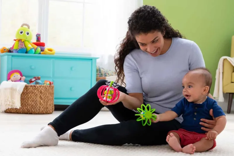 Sjovt æble der er nemt at gribe fast i for små hænder, og god at bide i. Rasler når det rystes.