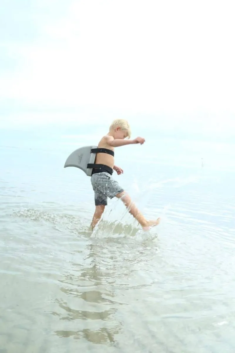 SwimFin Hajfinne – Lys Grå. Svømmefinnen fra Swimfin spændes på ryggen og er en genial måde at hjælpe barnet til at svømme naturligt på. Finnen er designet til at generere opdrift, og hjælper derved barnet til at holde sig ovenvande – helt uden at hæmme barnets bevægelser og leg.