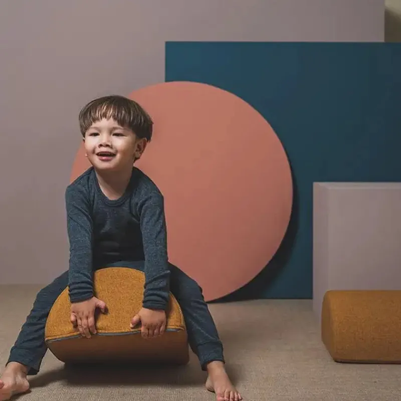 Dette modul er specielt sjov for børn at sidde og ride på, eller for forældre at hvile deres hoved eller fødder på når de ligger ned. Den kan også bruges til at styrke nakkemusklerne hos babyer eller træne børns balancesans, når modulet vender med den flade side opad. Placér den sammen med en anden KK Half Circle og skab din egen cirkel.
