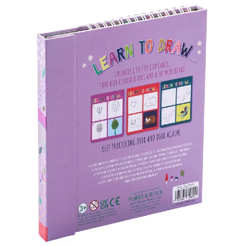 Bliv en spirende kunstner med vores Lær at tegne-aktivitet. Her med en eventyrlig verden . Åbn bogen for at afsløre 8 tykke blanke sider, whiteboard penne i 3 farver med viskelædere og et hvidt “lærred” til at kopiere billedet. Hver side har en 3-trins guide til, hvordan du tegner dit mesterværk! Bogen foldes næsten flad sammen med en magnetisk lukning og er perfekt til rejser og udflugter. Genbruges igen og igen.