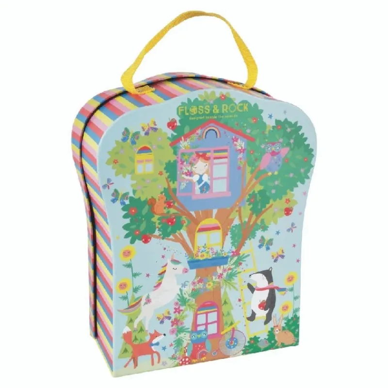 Vores lyse og smukke regnbue kuffert er perfekt tilat tage med på farten. Den genanvendelige æske foldes ned for at afsløre fire sjove rum og en smuk have. Fantasien vil løbe løbsk med 10 dobbeltsidede træfigurer, inklusive feer, enhjørninger, en hulahopring-bjørn og en rulleskøjte-lama! Når du er færdig med at lege, kan du putte dine træfigurer i den praktiske bomuldstaske med snoretræk, lukke din æske og bruge det seje bærehåndtag til at tage den af ??på dit næste eventyr.