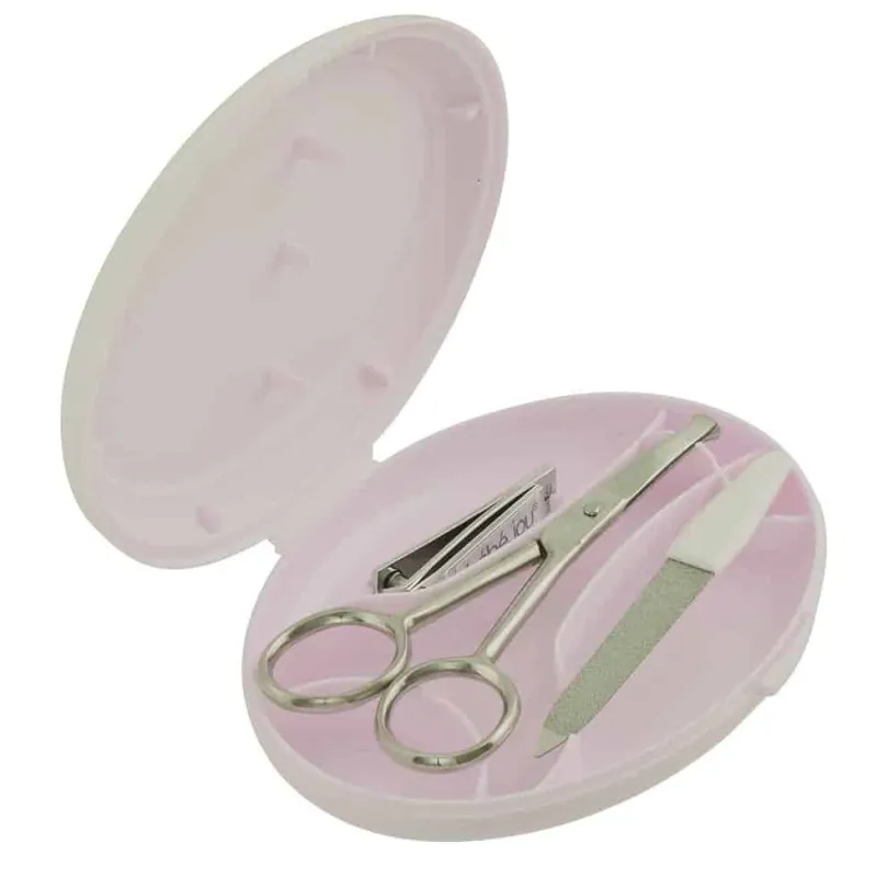 Manicure sæt, Mellow Rose. For optimal og sikker manicure af baby eller barnets negle. Med manicure-sættet bliver negleklipning gjort til en leg. Dog kan det være svært at klippe neglene mens fingrene er helt små, så her anbefales det at holde neglene korte blot ved hjælp af den lille neglefil.