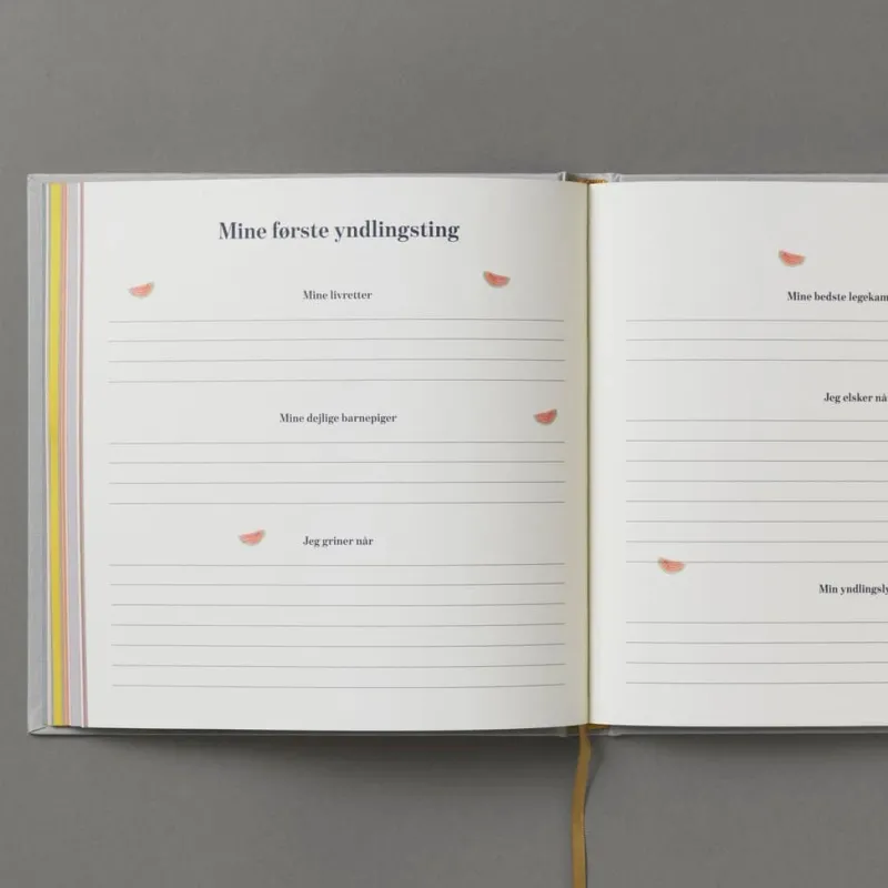 Bogen er fuld af relevante spørgsmål om alt fra graviditeten, babys første tid, personlighed, traditioner i familien mm. og giver mulighed for at notere alle tankerne om den altoverskyggende kærlighed, der vokser i takt med barnet. I udfyldt stand bliver ‘Mine første år – Minder og Gemmer – Special Edition’ en mindeværdig skattekiste af ord og billeder, der vil blive værdsat mange år frem.