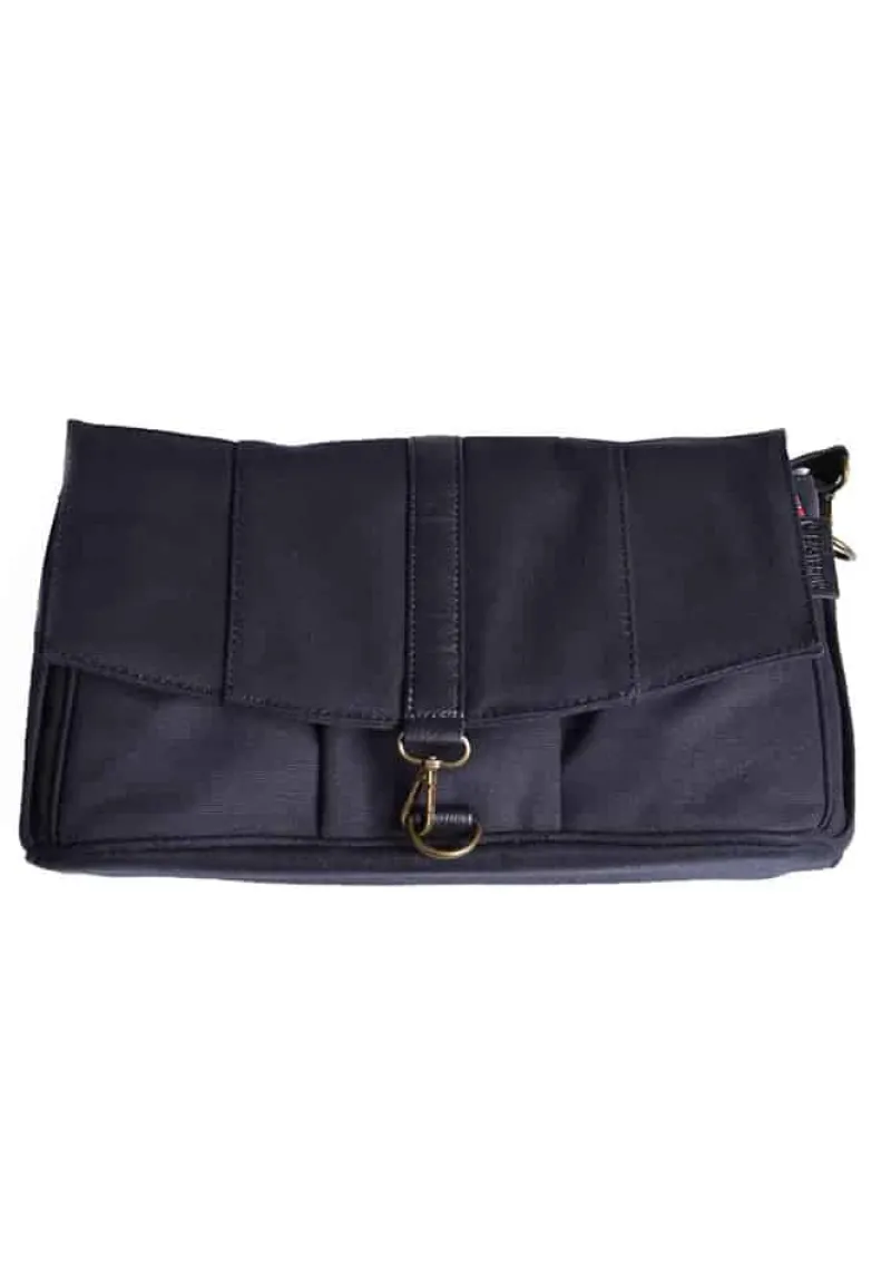 Vandafvisende yderstof i kraftig canvas tekstil. Mama Organizer Aarhus er en ny og praktisk taske til barnevognsstyret i kraftig canvas tekstil. Aarhus har et vandafvisende ydre, og praktisk inddeling på indersiden med justerbare rum, der kan rykkes rundt efter behov. På ydersiden findes to lommer i hver ende til flasker, samt 3 elastiklommer på fronten.